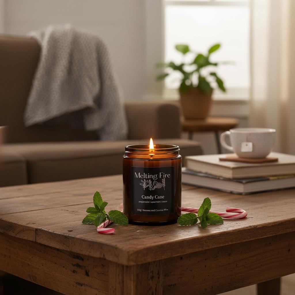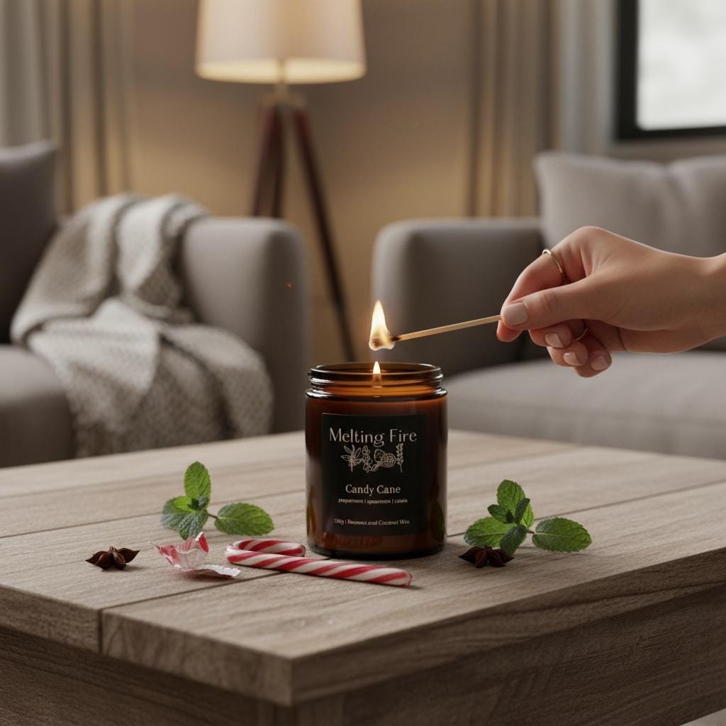 Candy Cane Christmas Candle - Beeswax Coconut Wax Blend, Essential Oils